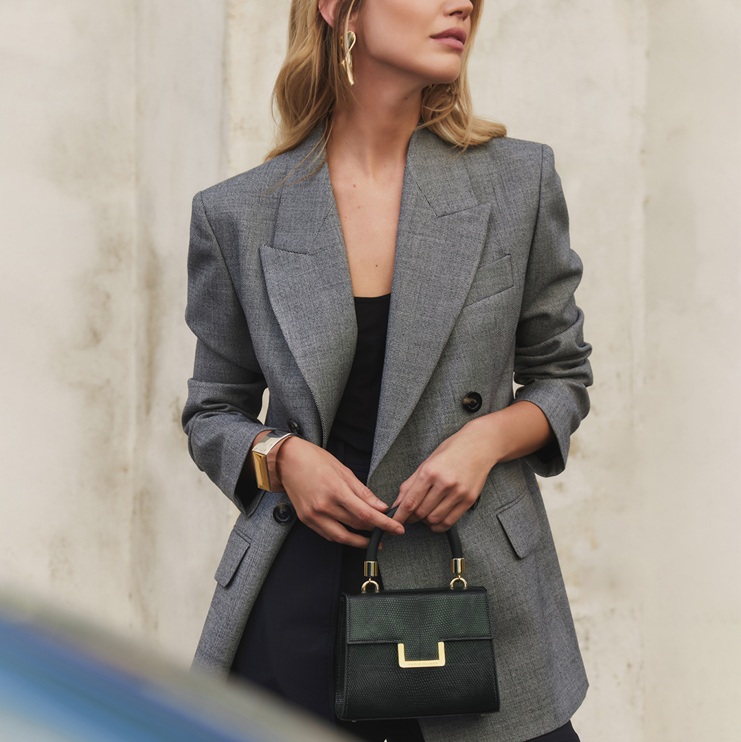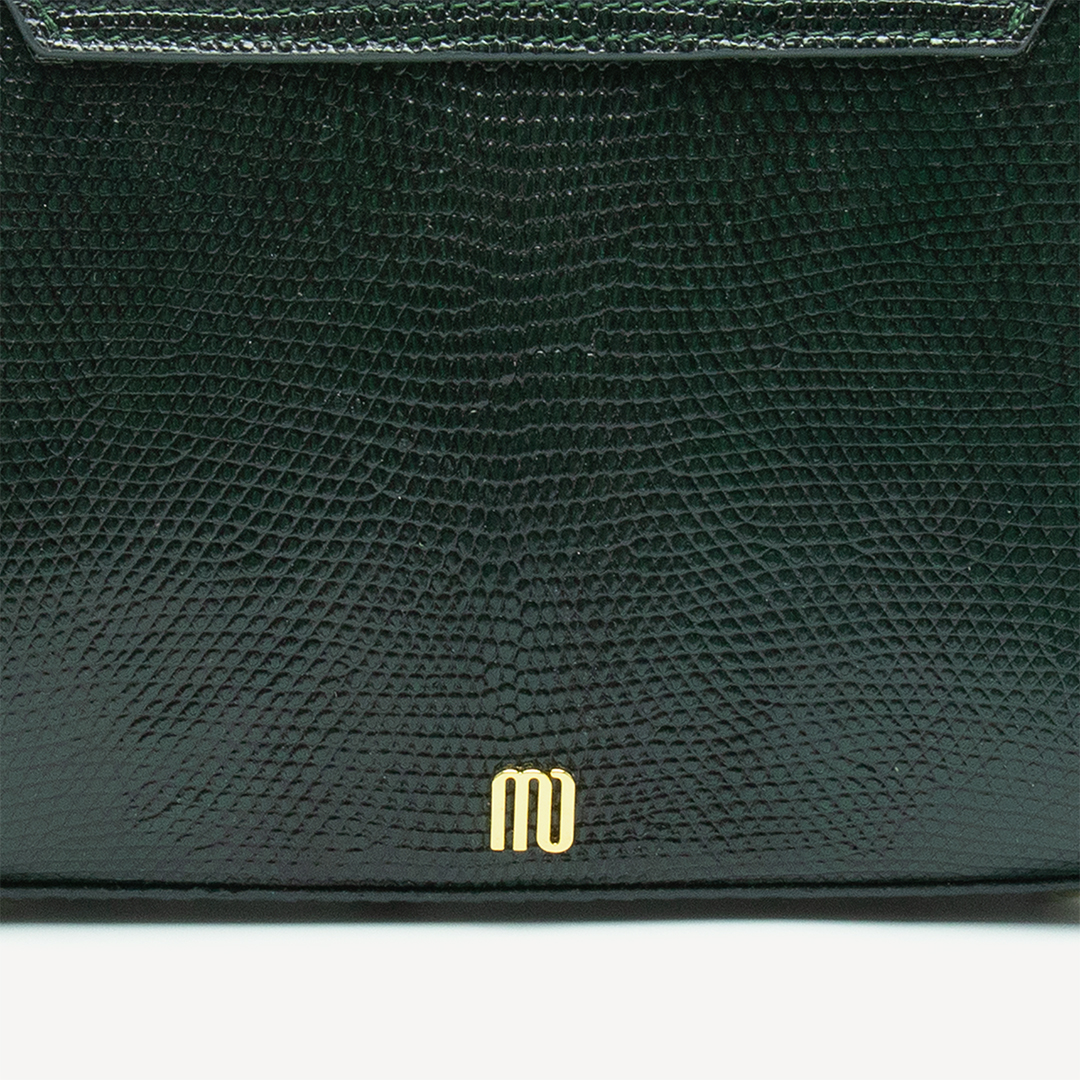 MINI MICHELLE is a brand icon: Lizard leather, DARK GREEN, glazed, gold finish. Mini bag model. This versatile style works beautifully from day to night. Whether wearing this style as a top handle or crossbody, the MINI MICHELLE is the ultimate accessory to have in your wardrobe.