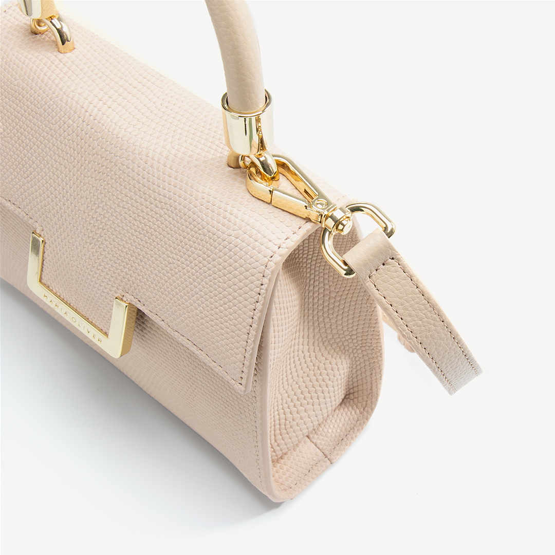 MINI MICHELLE is a brand icon: Lizard leather, NEW BEIGE, matte, gold finish. Mini bag model. This versatile style works beautifully from day to night. Whether wearing this style as a top handle or crossbody, the MINI MICHELLE is the ultimate accessory to have in your wardrobe.