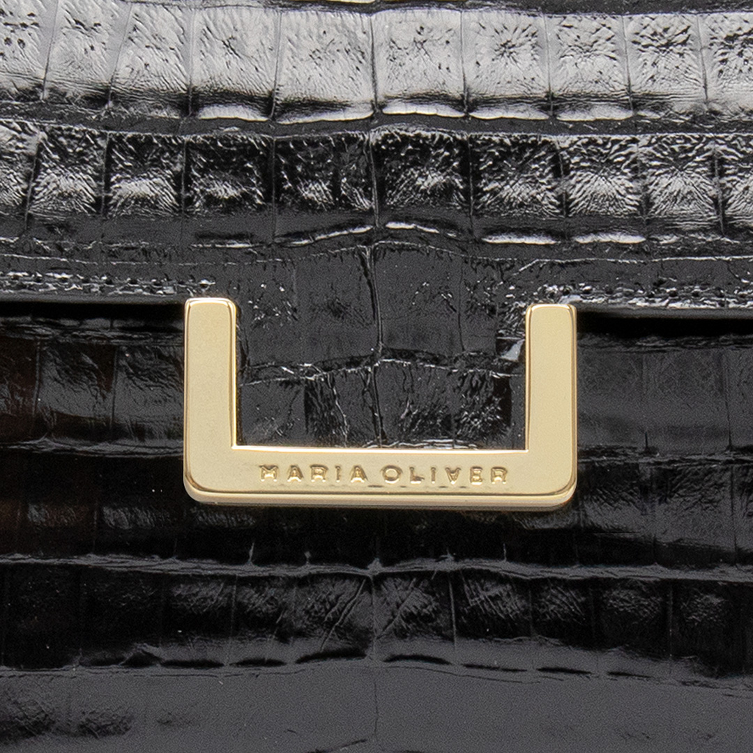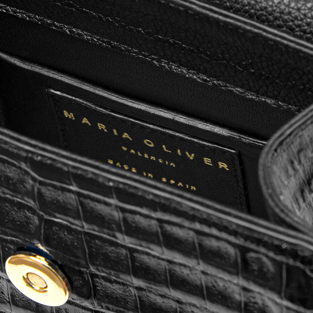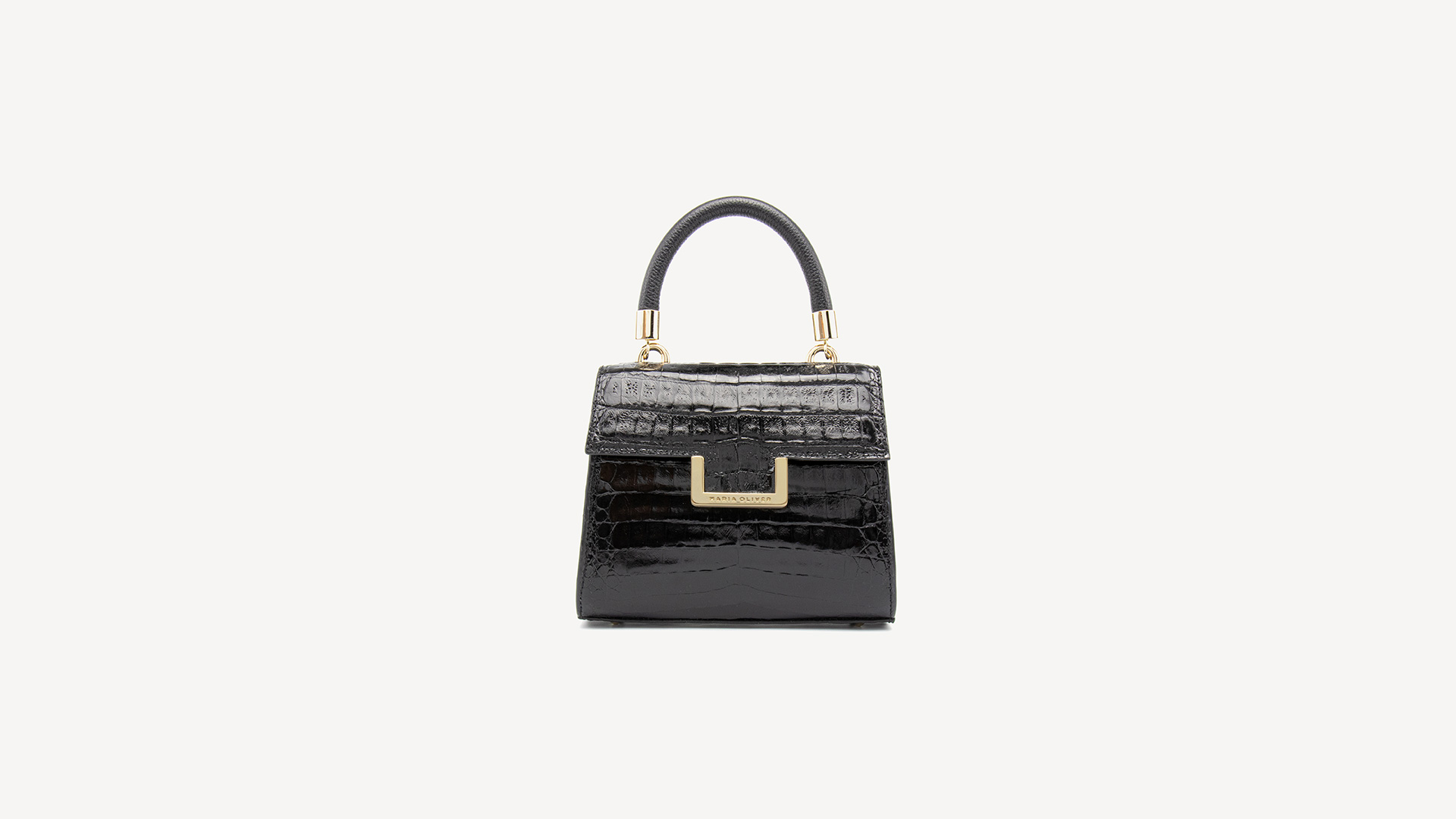 MINI MICHELLE is a brand icon: Crocodile leather, BLACK, glazed, gold finish. Mini bag model. This versatile style works beautifully from day to night. Whether wearing this style as a top handle or crossbody, the MINI MICHELLE is the ultimate accessory to have in your wardrobe.