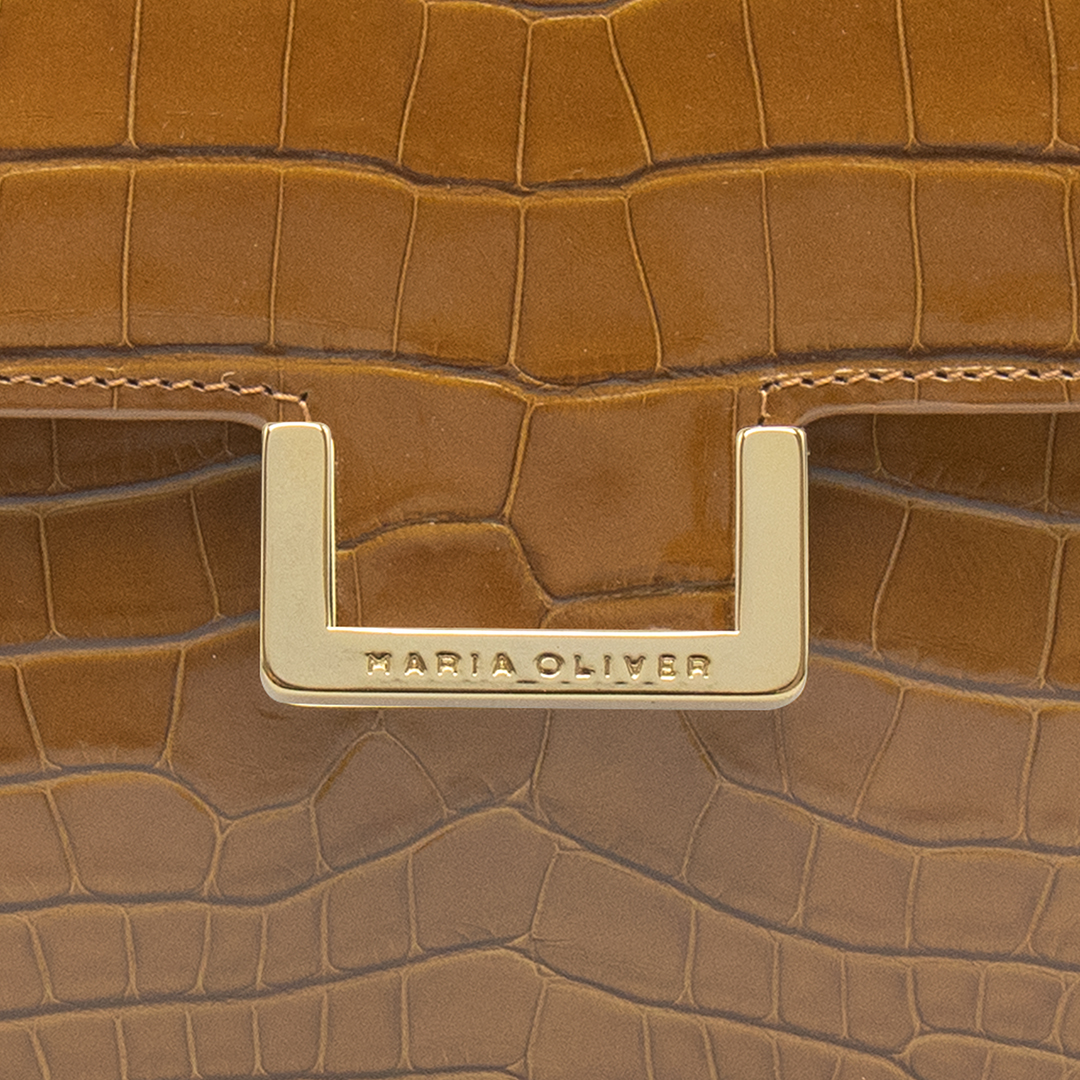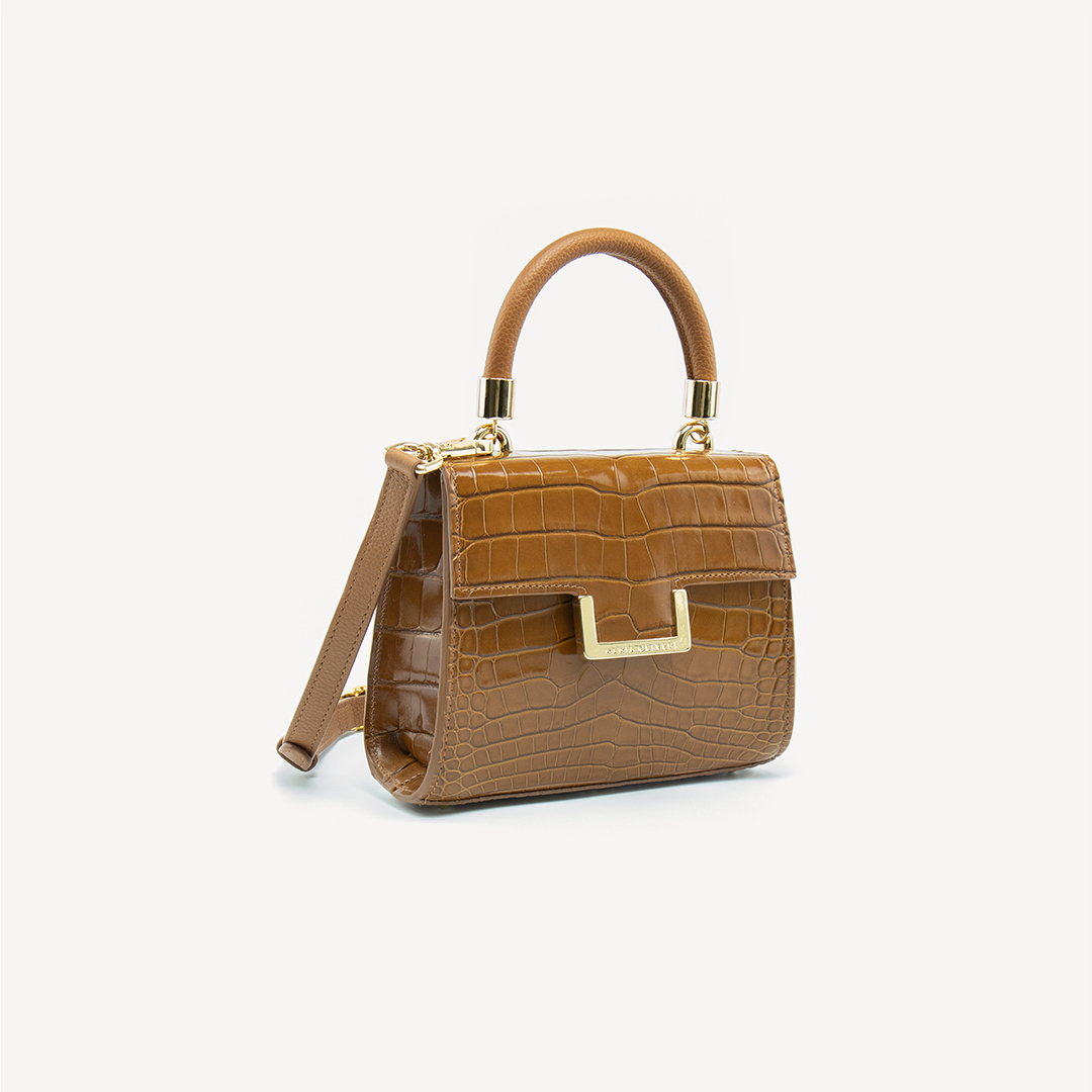 MINI MICHELLE is a brand icon: Alligator leather, CAMEL, glazed, gold finish. Mini bag model. This versatile style works beautifully from day to night. Whether wearing this style as a top handle or crossbody, the MINI MICHELLE is the ultimate accessory to have in your wardrobe.