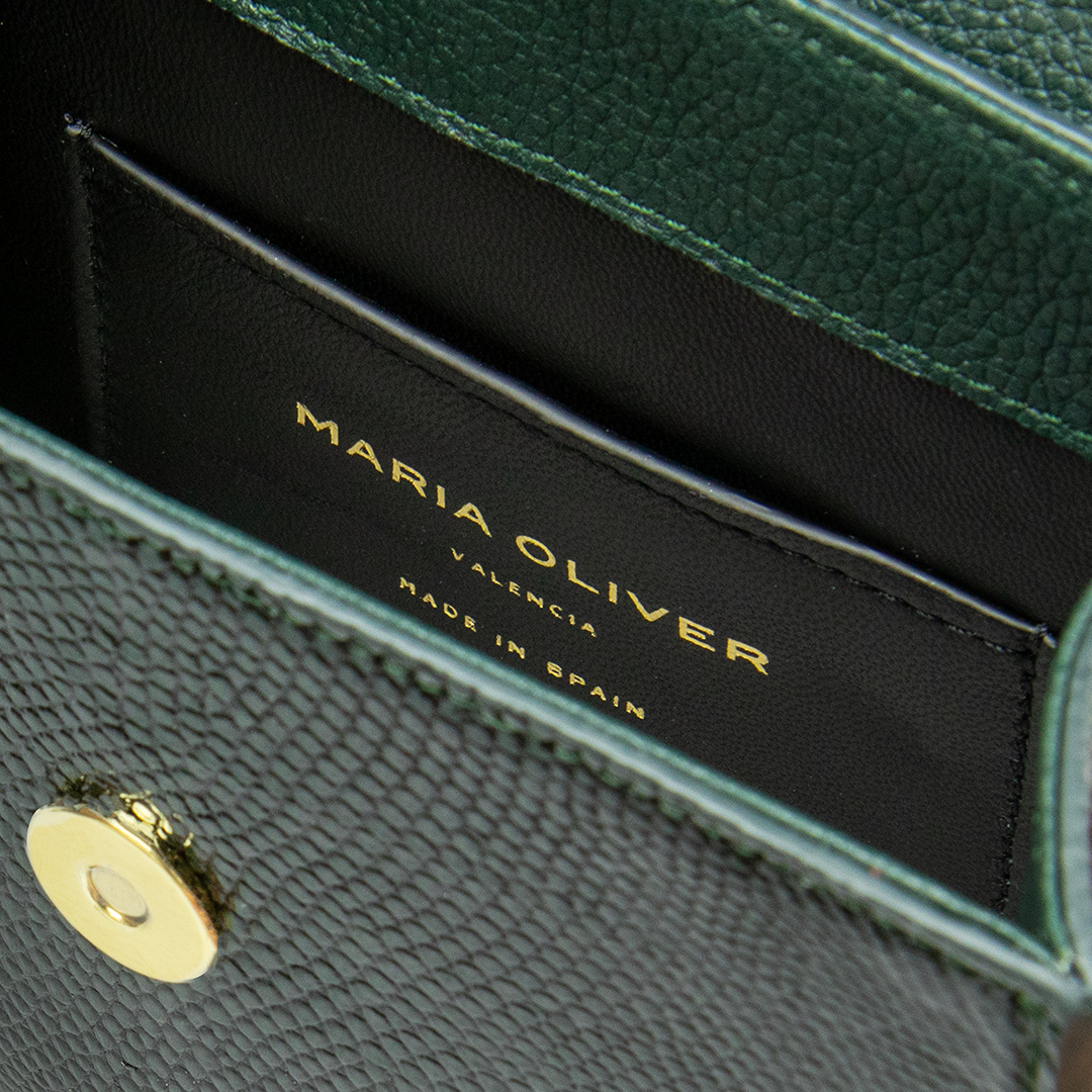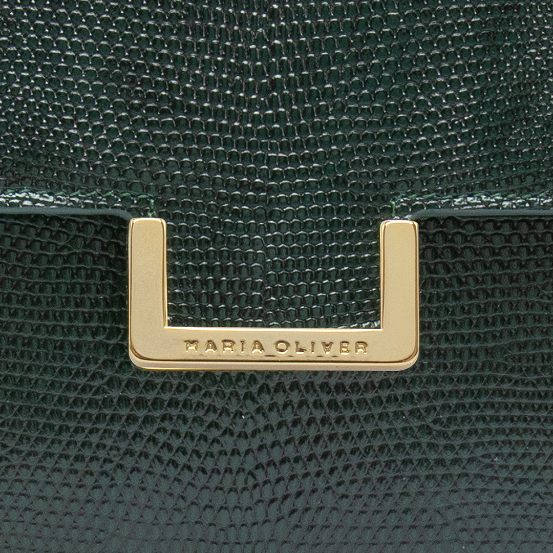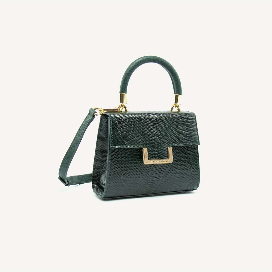 MINI MICHELLE is a brand icon: Lizard leather, DARK GREEN, glazed, gold finish. Mini bag model. This versatile style works beautifully from day to night. Whether wearing this style as a top handle or crossbody, the MINI MICHELLE is the ultimate accessory to have in your wardrobe.