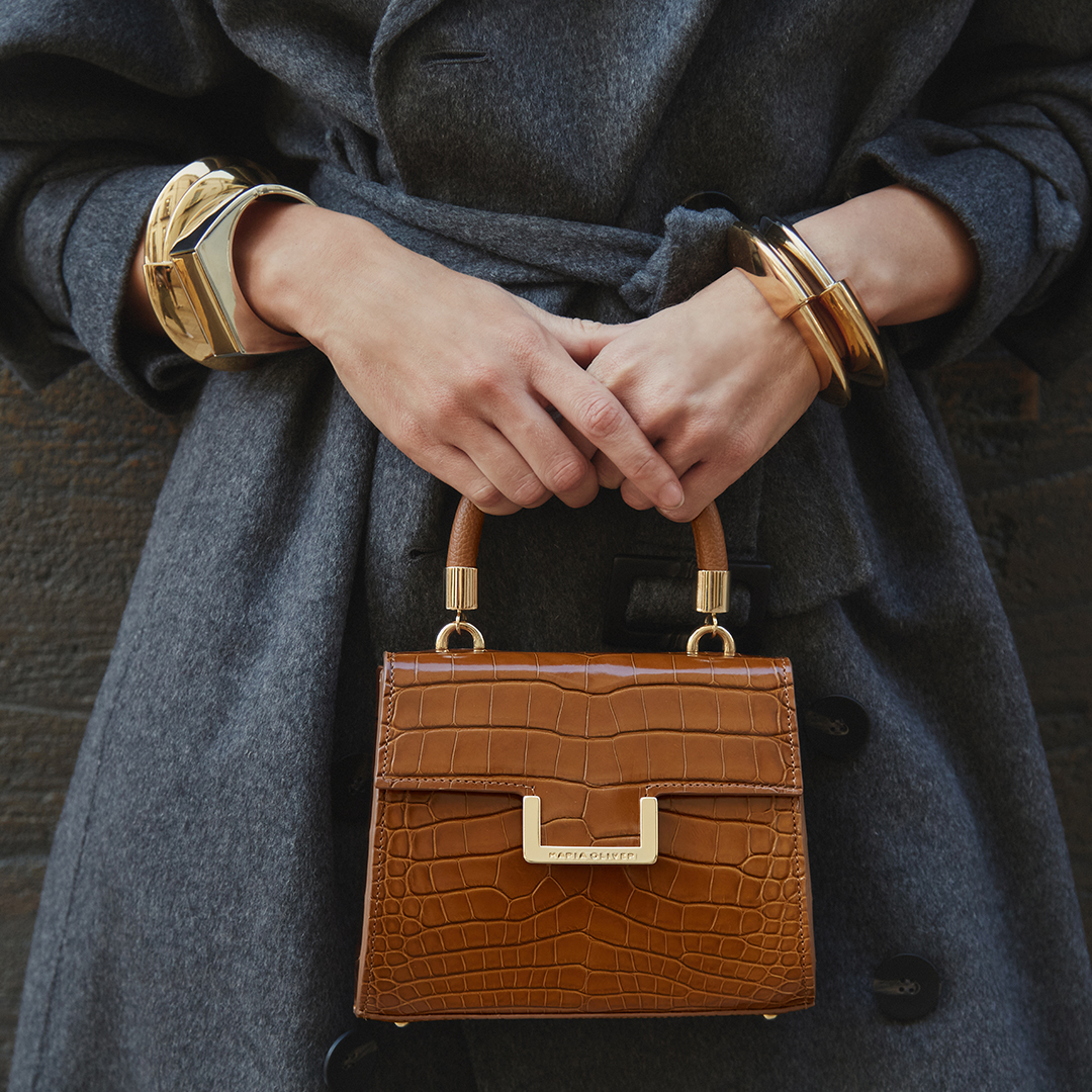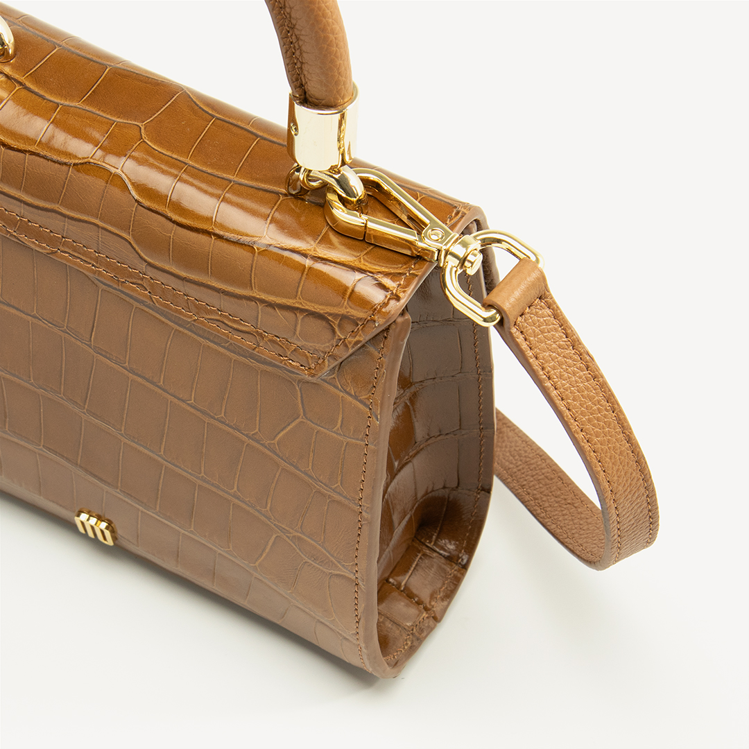 MINI MICHELLE is a brand icon: Alligator leather, CAMEL, glazed, gold finish. Mini bag model. This versatile style works beautifully from day to night. Whether wearing this style as a top handle or crossbody, the MINI MICHELLE is the ultimate accessory to have in your wardrobe.