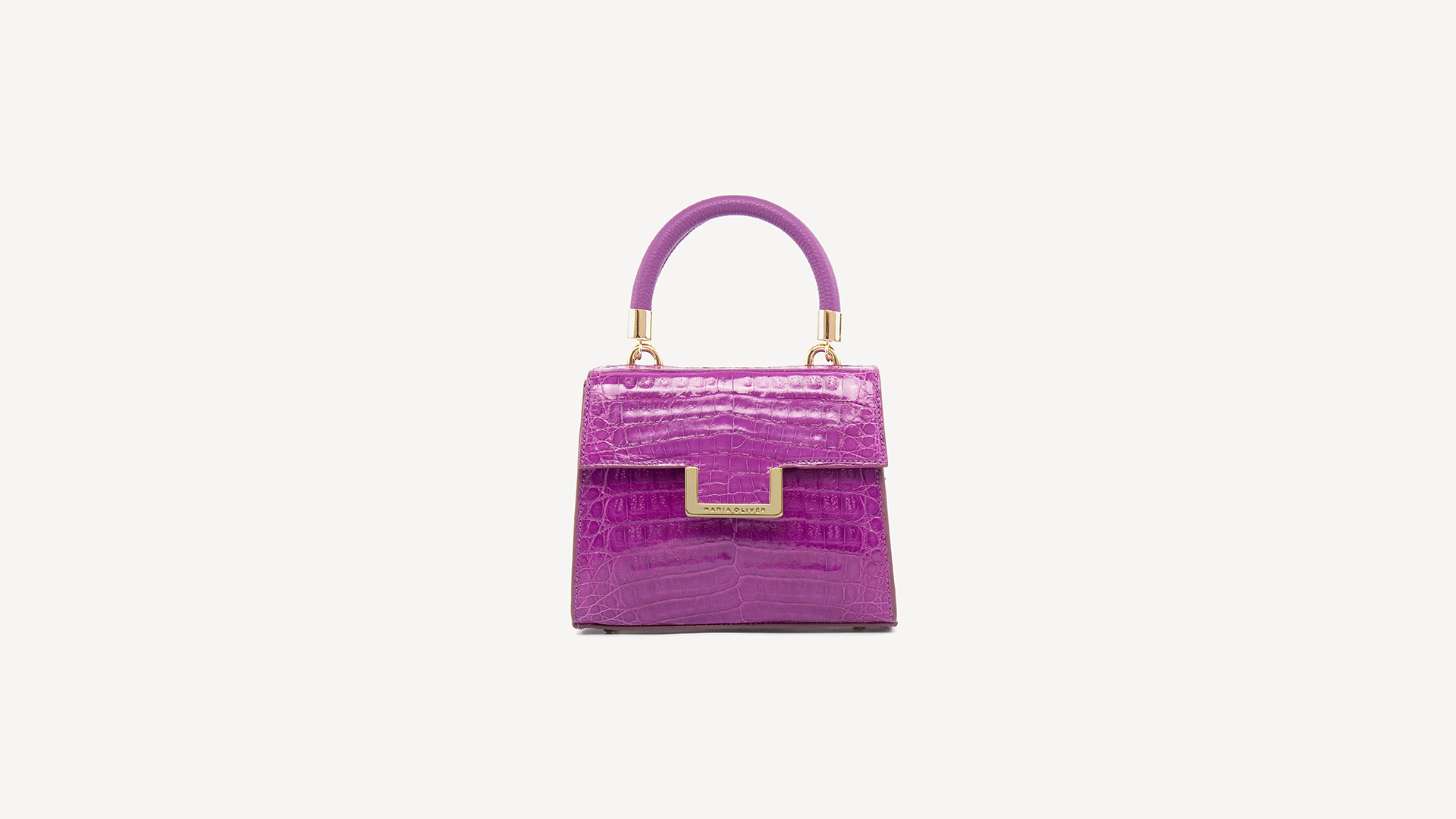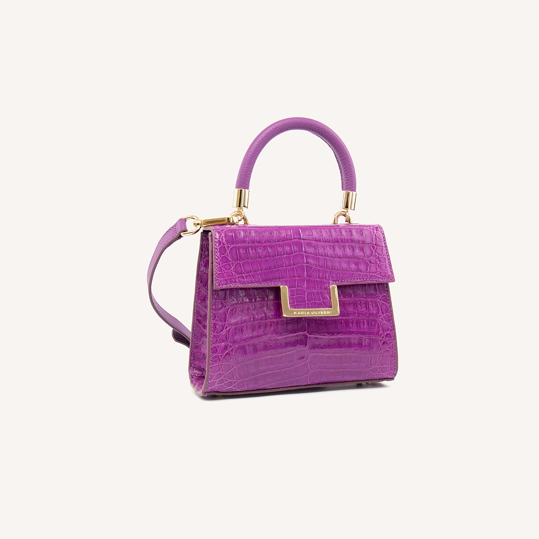MINI MICHELLE is a brand icon: Crocodile leather, VIOLET, glazed, gold finish. Mini bag model. This versatile style works beautifully from day to night. Whether wearing this style as a top handle or crossbody, the MINI MICHELLE is the ultimate accessory to have in your wardrobe.