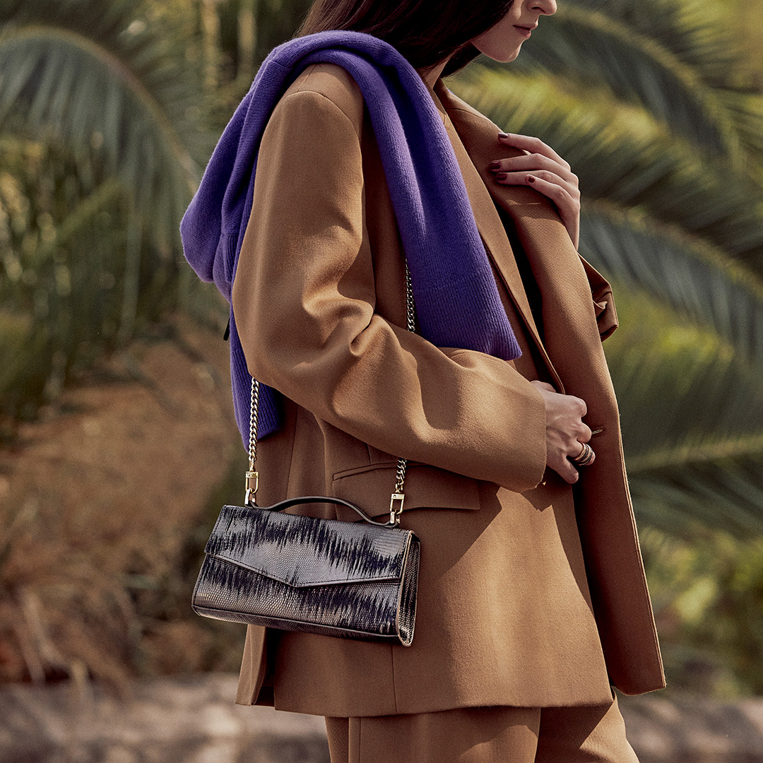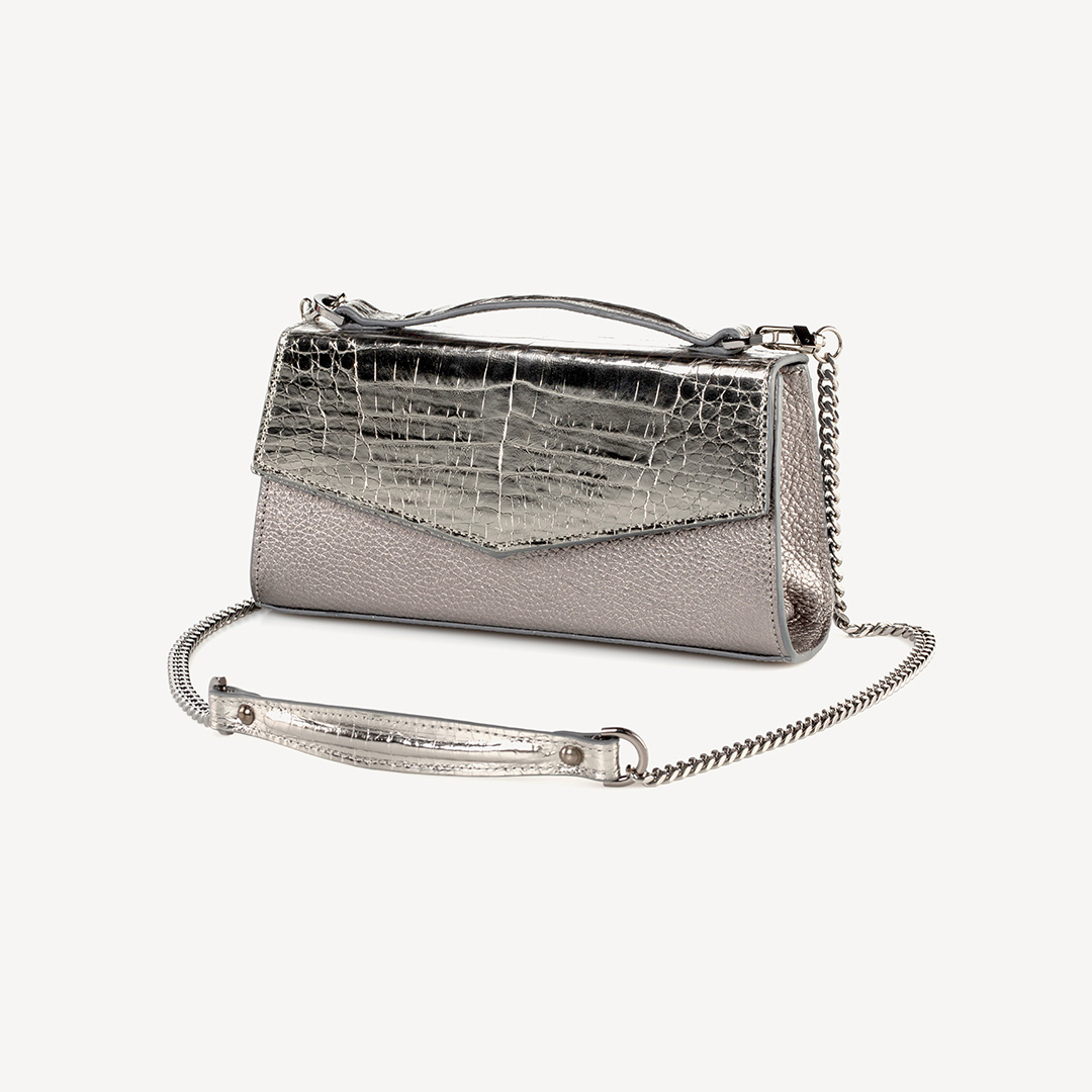 This versatile shape is the perfect companion to take you from day to night: Crocodile leather and cow, ANTHRACITE GREY, metal, gun metal finish. Use as an elegant top handle or as a crossbody for a more casual look. Also fits perfectly on the hand as a clutch for all occasions. Accommodates all of your essentials including a mobile phone.